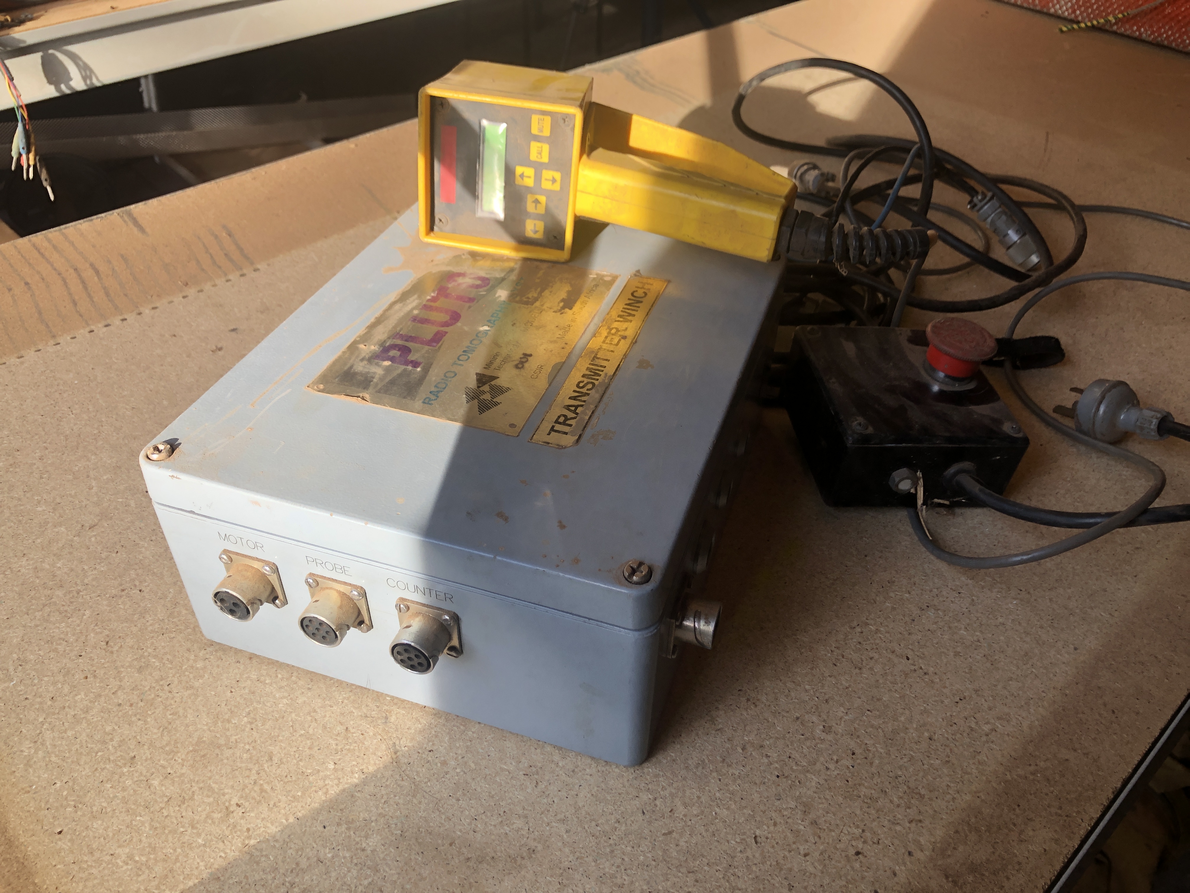 Our 700m winches came as part of a fully automated crosshole radar tomography system and this was the motor controller it used. Made originally by South Africa’s CSIR it suffered mis-management resulting in demise. It failed and was replaced with different motor controllers and counters due to its lack of documentation. It goes free with any purchase of both winches in case it is any use even if just for reference and diagnosis of how it used to work.