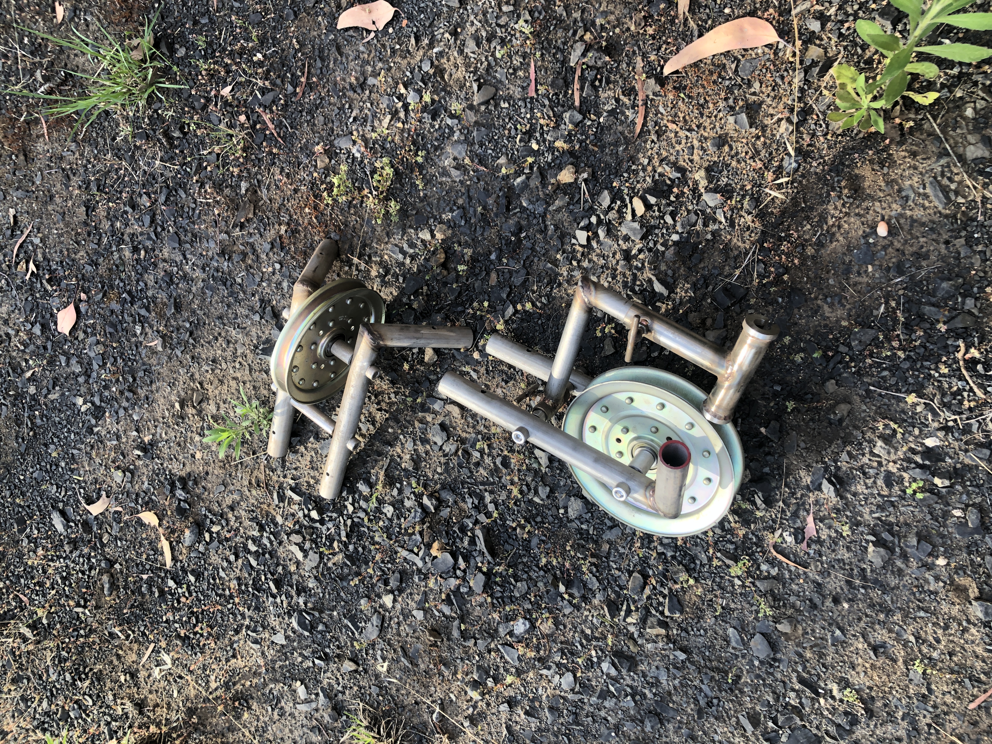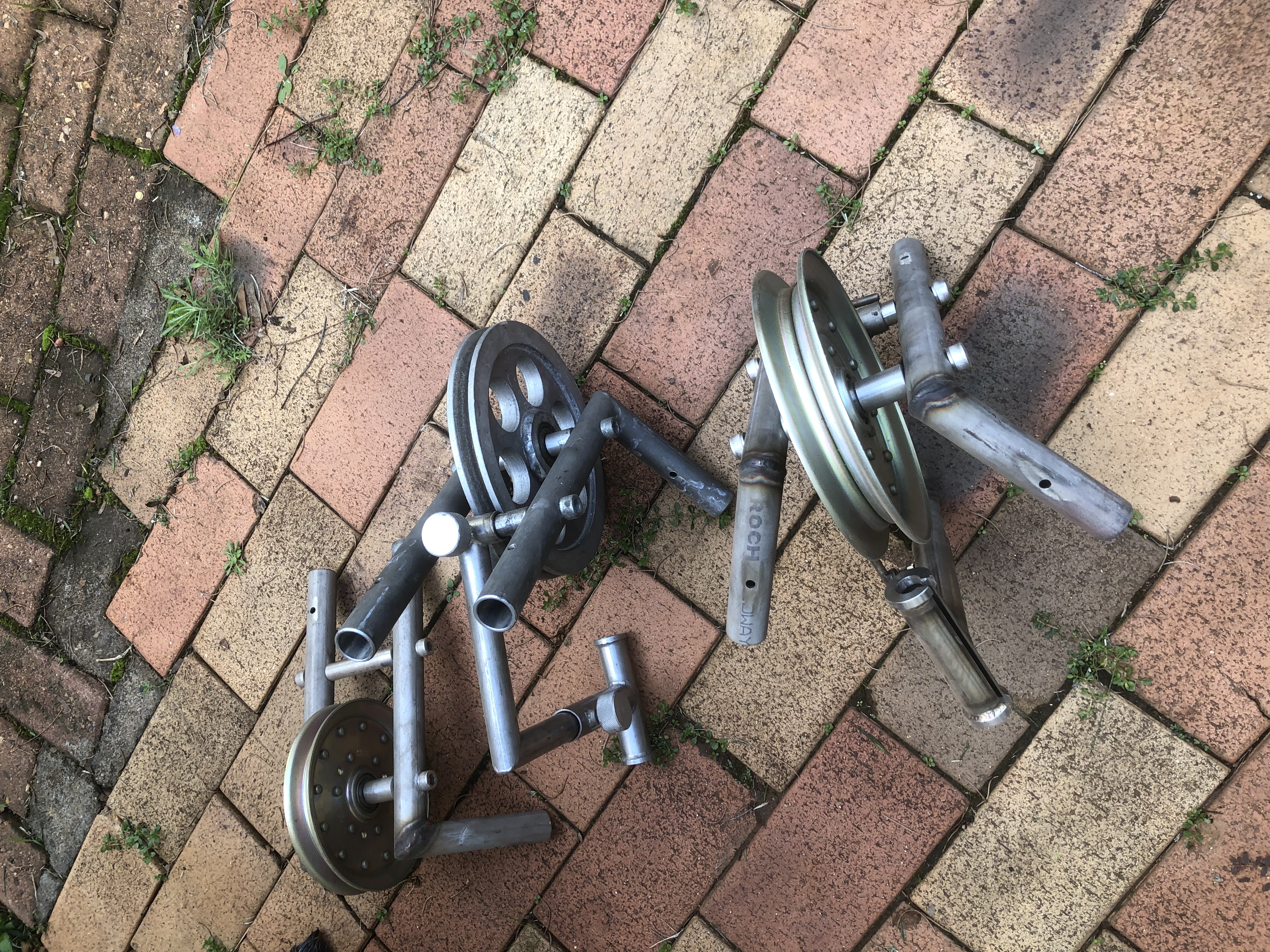 For each of our two winches and for the 243m cable reel we have tripod well head pulley assemblies. For the two big ones there are attached mud-scrapers.