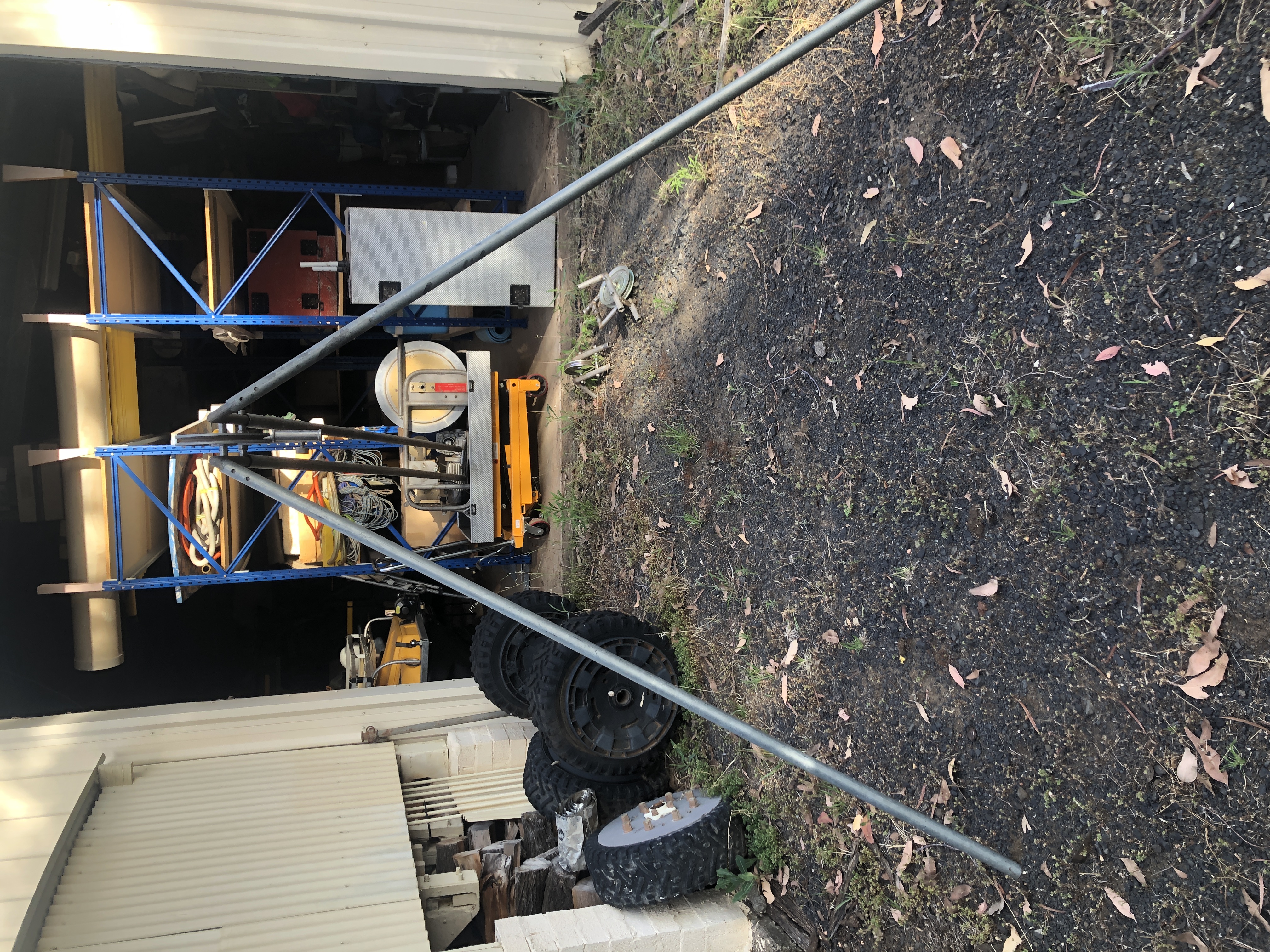 Each of our winches is equipped with a tripod that braces directly onto the winch. Well head pulleys are integrated into the tripods and mud scrapers suspend from them. The braces back to the winch put the hole about 3m behind the winch.