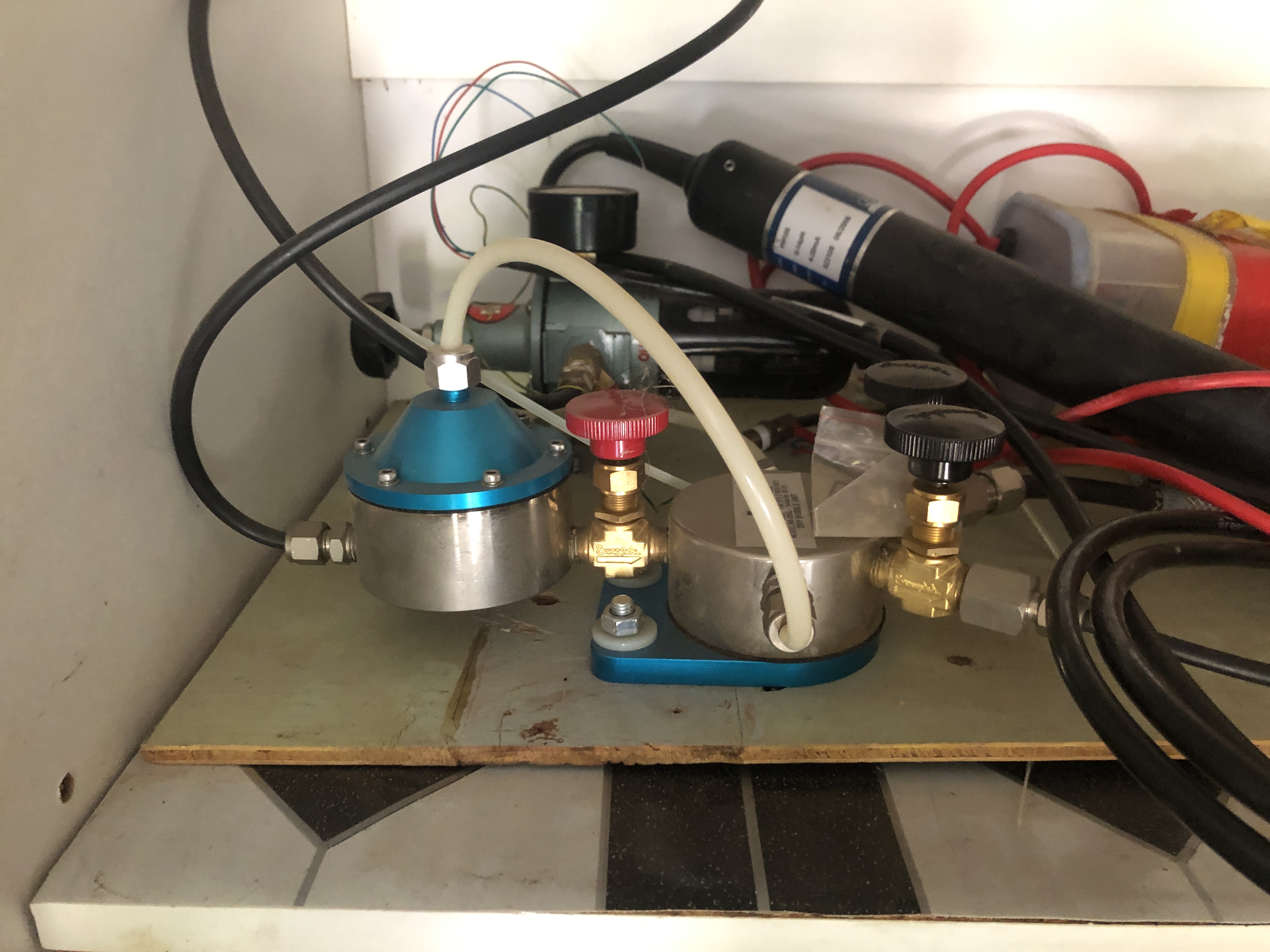Bubbler system for River Gauging designed for use with gas bottles replaced monthly. Now this is obsolete technology due to invention of bubbler pumps. It can still be used for something like controlling low flow groundwater sampling with a bit of improvisation.