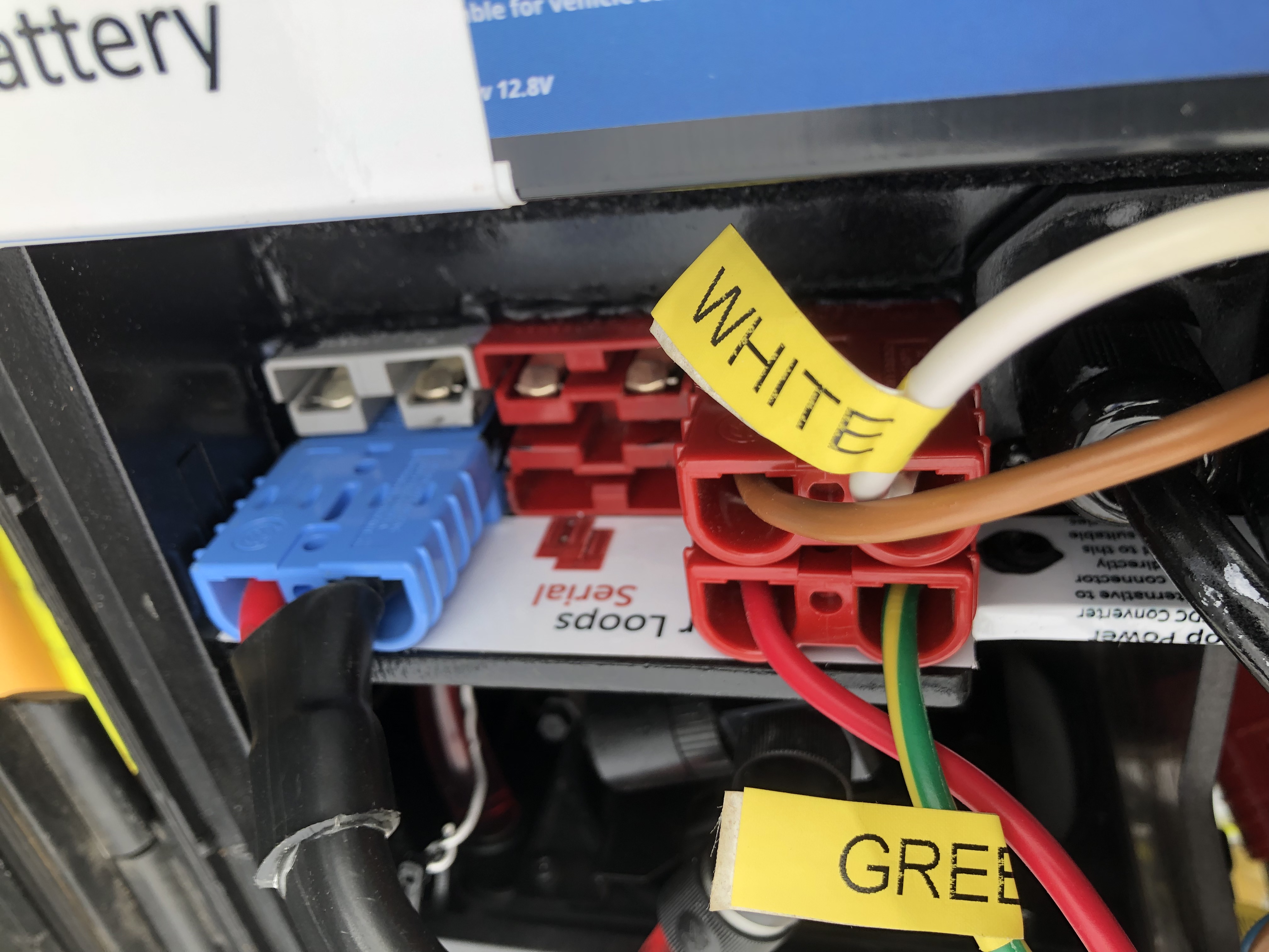 The early transmitters allowed all loop and battery connections to be made in one bank of Anderson connectors inside the box.