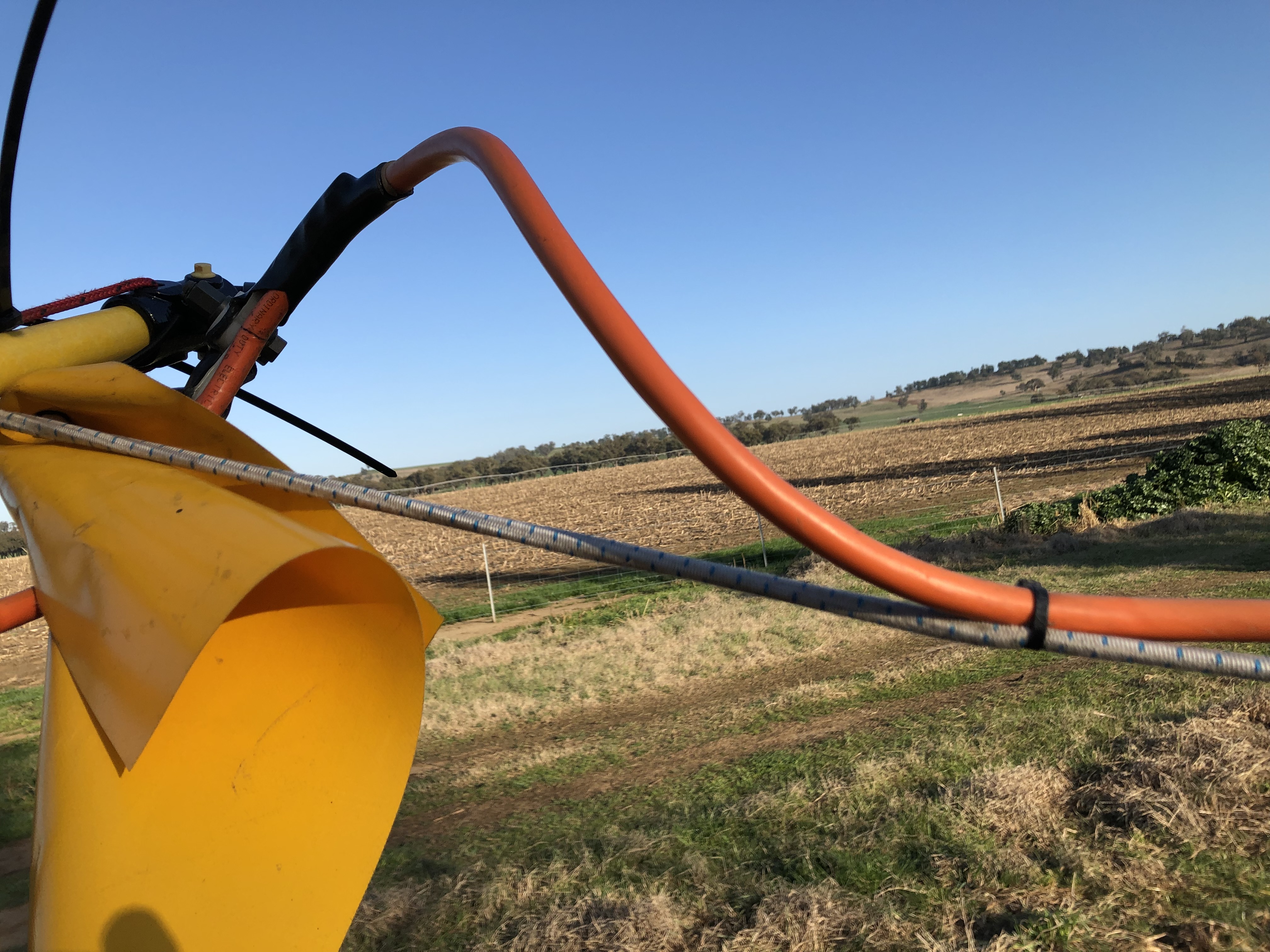 When driving in traffic a wide load flag can be added because the side booms are otherwise not clearly visible. The flag does not necessarily make public road use legal – there are additional requirements specific to each jurisdiction. Motorized winch boom retractors can be added to the Wallaby drawbar for quick retraction when driving plus surveying in light traffic.
