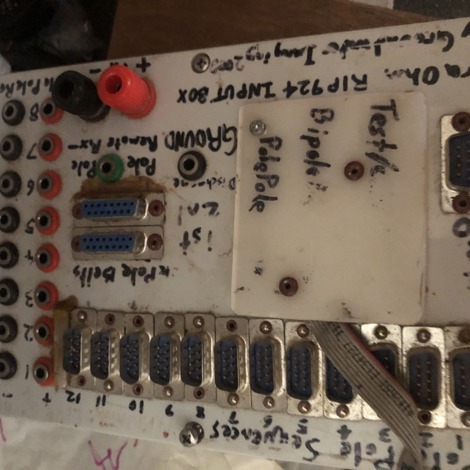 The Lund receiver has no internal switchbox. We ran 8 channel streamers directly into it without problem but for terrestrial survey a manual switchbox was necessary. We constructed this as shown with numerous 9-pin d-sub connectors for connection of each pair of sets of 8 electrodes at a time so that there were 16 electrodes connected for differential use. Individual 4mm sockets for the 16 electrodes also are supplied.
