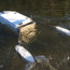 This propulsion system clips onto the rear of HERBI-USV when required but can be kept off at other times to keep HERBI-USV lighter and simpler to operate. The extra complexity, battery charging requirements and weight of the propulsion system are not always wanted so they are removable. The propulsion system folds to fit into the same half palette box as the HERBI-USV core. When in use the thruster support arms and peripheral floats (like outriggers) are splayed outwards and downwards deeper into the water so they do not draw through air. For rougher waves the outriggers should be splayed out further and deeper into the water.