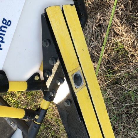 The front of the Wallaby undercarriage has a slide out pivot that takes large forces and allows the suspension movement only in directions circumferential to the pivot.
